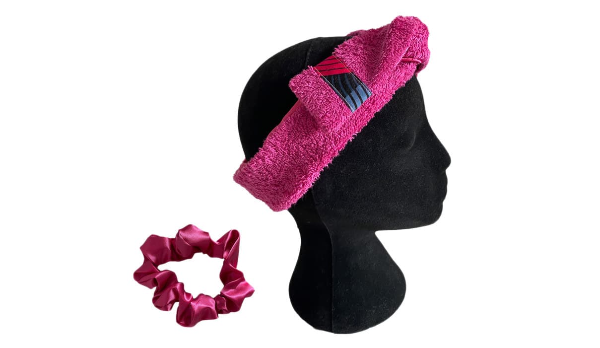 Einfach während dem Sport oder beim Hautpflege das Gesicht vom Haar befreien mit dem Curly Nights Headband aus Frotee und Satin.