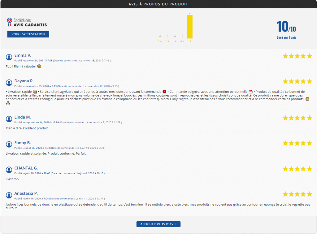 Nous utilisons des matériaux de grande qualité. Ce bonnet est réalisé à la main de manière artisanale, avec un grand soin apport aux finitions afin qu’il dure longtemps. Vous pouvez le laver à la main ou en machine à 30°C et le faire sécher de préférence à l’air libre, près d’une source de chaleur pour accélérer le séchage. Entre deux lavages, vous pouvez simplement rincer à l’eau la partie qui a été au contact des cheveux et laisser sécher, en prenant soin de ne pas détremper le rebord en éponge. En tant que créatrice, j’utilise le mien régulièrement depuis plus de 18 mois et il est comme neuf ! Et voici ce qu’en pensent nos clientes :