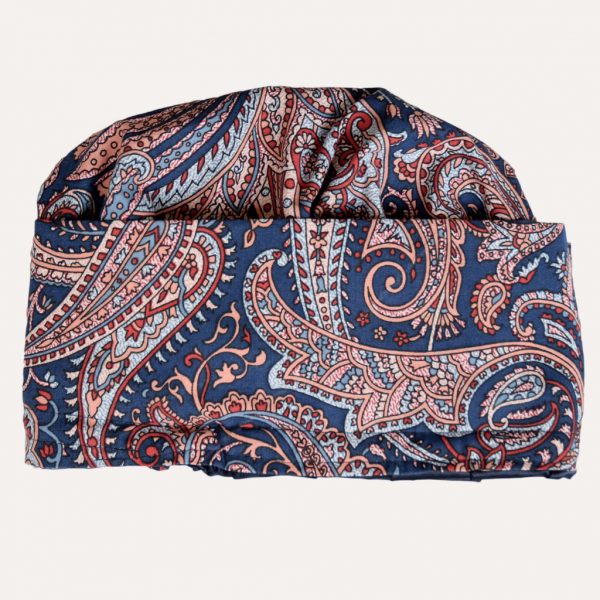 Der Turban ist waschbar bei 30 Grad im Schönwaschgang oder per Hand. Der Draht kann dafür ausgezogen werden.